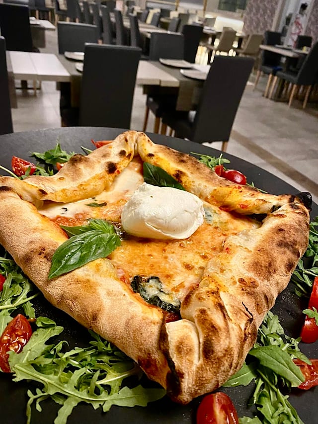 (Crema di parmigiano, fior di latte, prosciutto crudo)