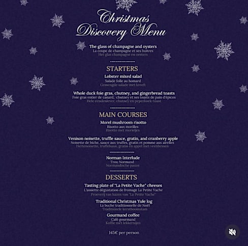 2/10For a 145€ menu the chef was not present and the food was awful, old, and cold. The waiter was so rude and hid the reality from us and accused us of being rude and not wanting to pay, when we confronted them.