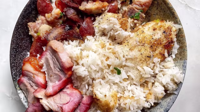 - Tofu, svensk nötfärs och färska salladslök, soja, doubanjiang, sichuan-peppar. Serveras med ris