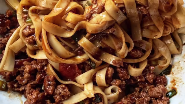 - Wokat entrecote med torkade chili, hemgjord chilisås, ostronsås, ingefära, vitlök, purjolök i doubanjiang. Serverad med zhimabing och dagens sallad.
