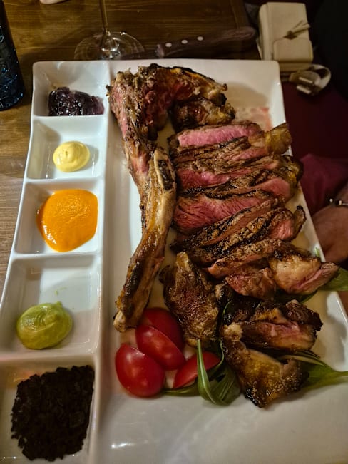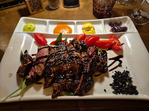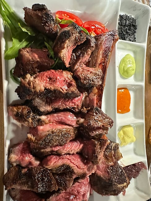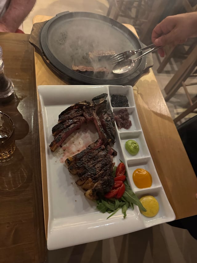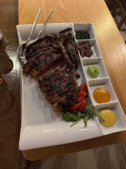 7/10Most of the food was good, and truly, the server and owner were approachable and hospitable. We felt like we were talked up to ordering more and $$ food (the aged steaks). We ended up with the T-bone, which was then served without any sear or seasoning, and while the filet was cooked to temperature, the strip was completely raw. They do provide a hot plate to continue cooking slices on your own, but this feels like a cop-out to address what is likely a recurring problem. We’re glad that others have not expressed these issues, but we would not go back.