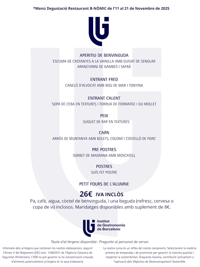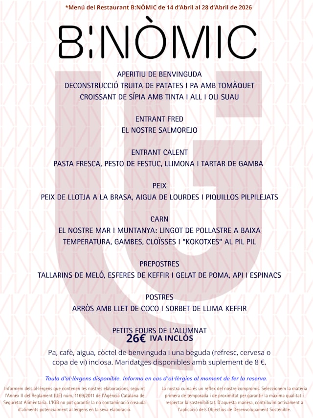 INS IGB B-Nòmic Menú Degustació i Maridatge