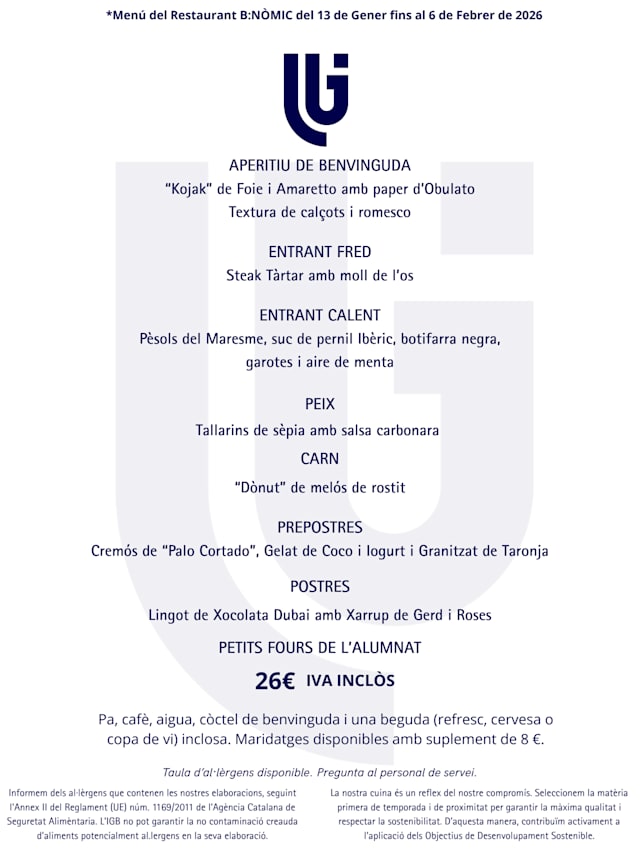 Menú degustació del 10/02 al 06/03€26 per guest