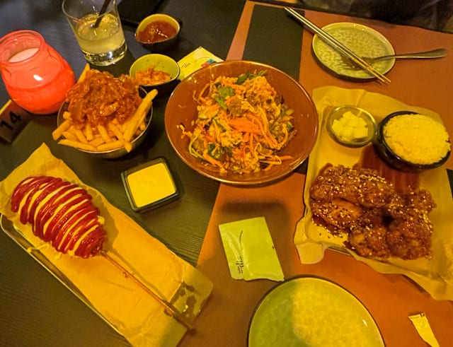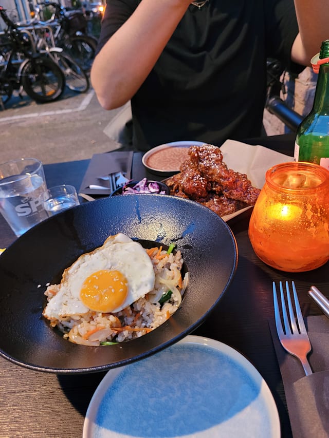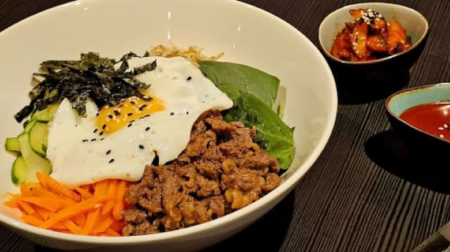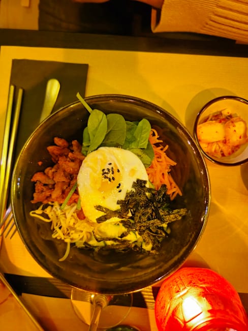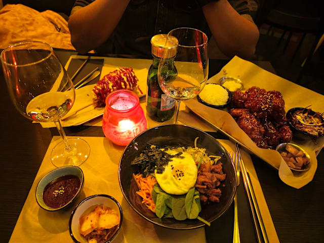 10/10Well, when we walked in, the decoration was poor, paper table cloths, random forks and napkins around and a distinct whiff of the toilet at the back left us feeling a bit like we made a mistake book but HOLD ON! Because the food was amazing! The bibimbap, honey fried chicken, dumplings all great and good portions. The drinks (grapefruit alcohol) were lovely and then to our surprise we were launched into karaoke. Best night in a long time! Will go again.