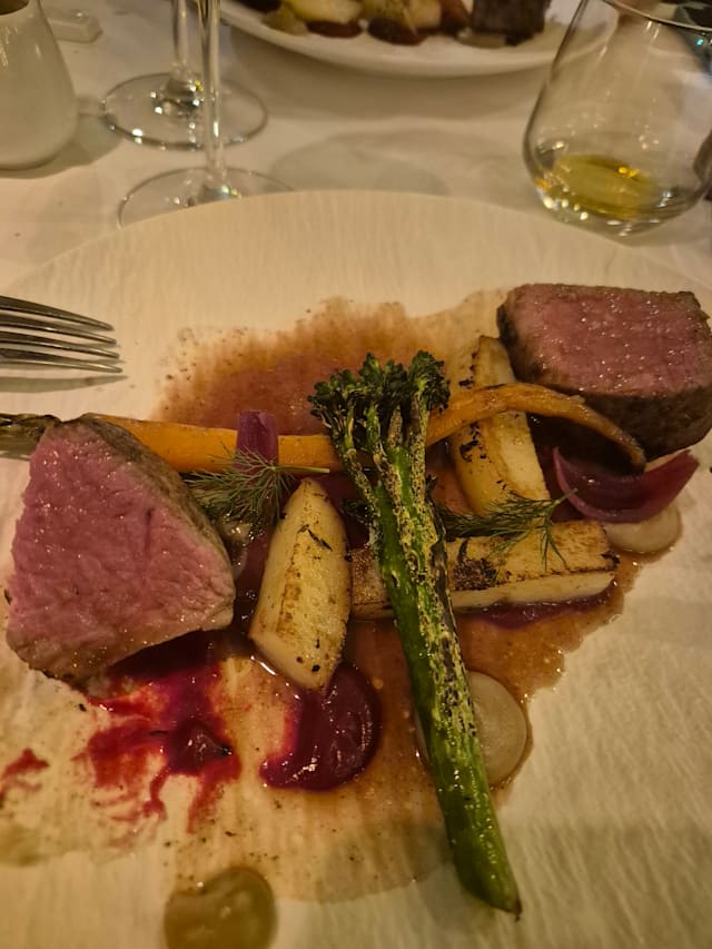 8/10We had a three course meal, one steak and one vegetarian main course. Both were excellent quality and imaginatve food (though pricy, but no more so than was to be expected). Staff were professional and friendly. Well worth visiting!