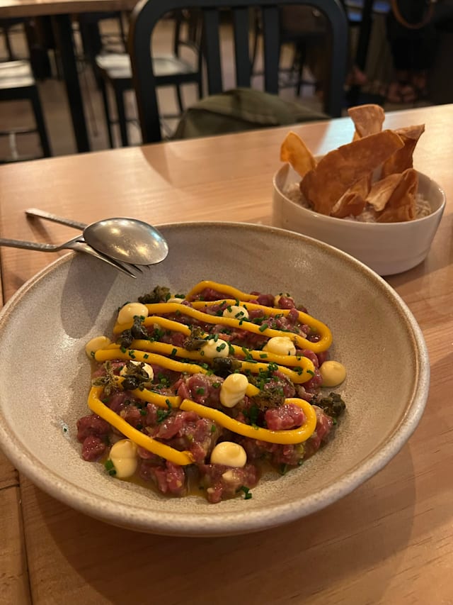 7.5/10This restaurant has great potential. The food is creative and some of the dishes were outstanding such as the sweetbreads and the anchovy toast. The service is very pleasant, however they need to work out some of the kinks in the kitchen. Three of the items that we wanted to order were unavailable, which was most of their seafood items. It would also be better to let guests know ahead of time what is not available so that you don’t spend time deciding on what to order and get disappointed when told it isn’t available. Chopped meat for steak tartar is nice but diced meat made for a chewy experience and the dressing overwhelmed the beef. The wine selection by the glass was great and the knowledge of the wine was excellent. Lot of pluses to build on but success will depend on working out the kinks. Good luck!