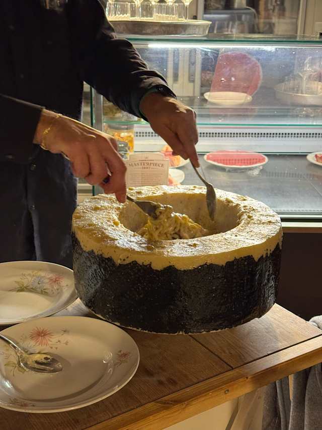 10/10The food here is absolutely magnificent! The pasta gricia served in a wheel of Pecorino cheese is a true delight — not only for its rich and balanced flavors but also for the spectacular way it’s presented. The steaks are perfectly cooked — just the way they should be. And the idea of serving tiramisu in a moka pot with coffee is simply brilliant — both creative and delicious. The staff deserve special praise: they are friendly, attentive, and very polite. Everything is served promptly, the tables are cleared quickly, and they do it all with warm smiles. The interior is cozy and inviting — the kind of atmosphere that makes you want to linger, talk, and enjoy the company. A wonderful dining experience overall — highly recommended!