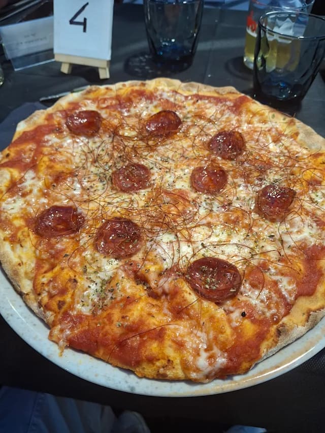 Pomodoro, salame “pepperoni”, mozzarella, olio, peperoncino e origano
