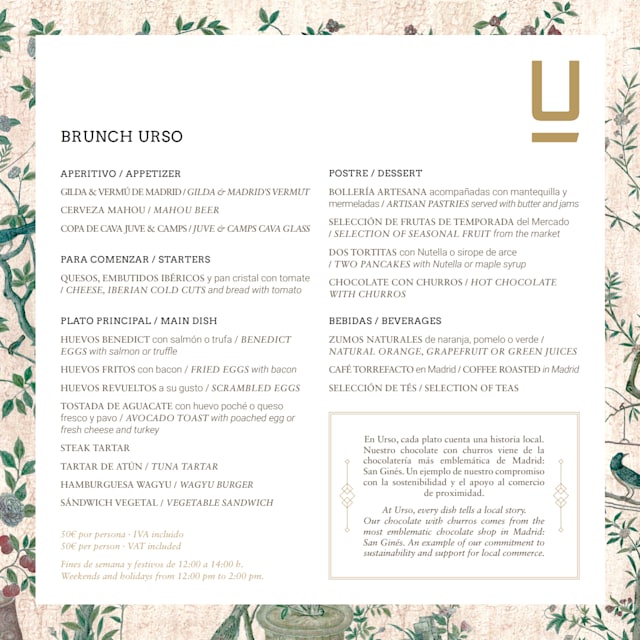 Brunch urso€50 per guest