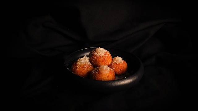 - Croquetas de queso pecorino y pimienta negra , gel de limón