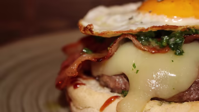 - Hamburger della casa (200gr), ketchup di datterino 100% italiano, pancetta di suino nero dei nebrodi, rucola, vastedda del belice D.O.P., cipolla caramellata, funghi porcini trifolati