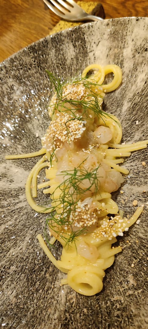 10/10This is easily one of the most needed visits in Florence. My wife and I were on our honeymoon and we had this recommendation to dine here. We came from the city centre and walked to the restaurant on the other side of the river. It is a small restaurant, with an abumdance of character that exists in the subtly of the decor and design. We chose to experience the 5 course tasting menu and a glass of orange wine and the pecorino, with a mystery wine that was recommended based on my wife's request (super accommodating to our request). We felt encouraged, cared for, and, most importantly, extraordinarily well fed! The mushroom chawanmushi was an extreme well received dish! The other dishes that spoke to us were the pidgeon, yes pigeon, and the amberjack ceviche. We both could not recommend this place enough. Upon leaving we asked for some other city recommendations and Maeto and the staff didn't disappoint. Thank you for creating a unforgettable time for us. We will be back as soon!