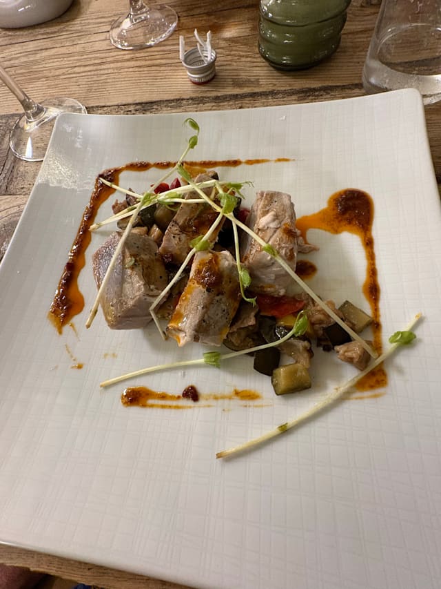 Tagliata di tonno, verdure di stagione, salsa gochu calabrese leggermente piccante