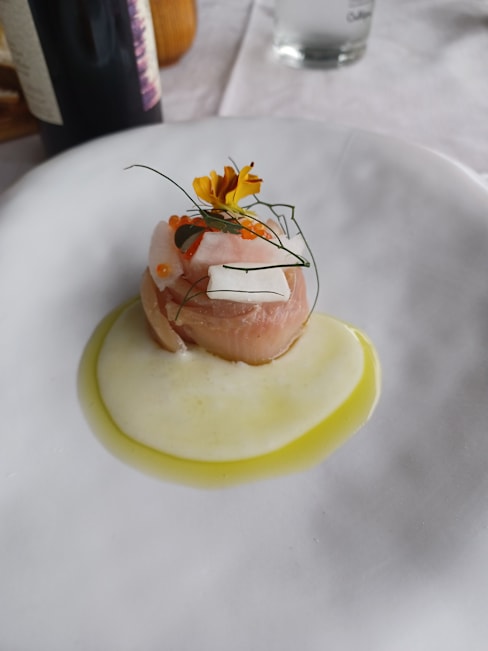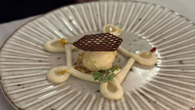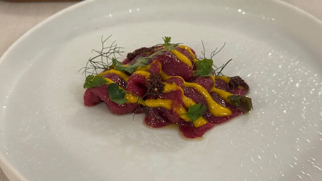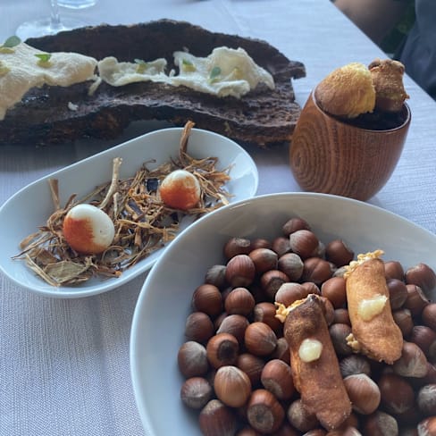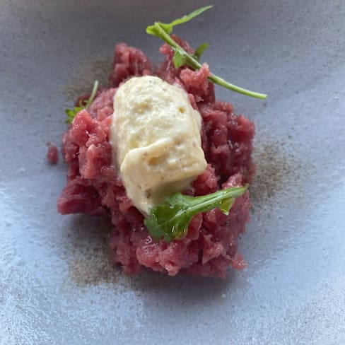 10/10+2Located by the end of a narrow road is this magnificient place. We were seated with a fantastic view. The staff was very friendly and speak very good English. They had two set menus, but you could pick and choose from both menues (and we did that). First we got four different starters, and they were really beautiful and tasty. We both started with an amazing tartare, followed by risotto and some local barbeque ribs. Ended with a nice cup og coffee. A really good experience and we will be back for sure.