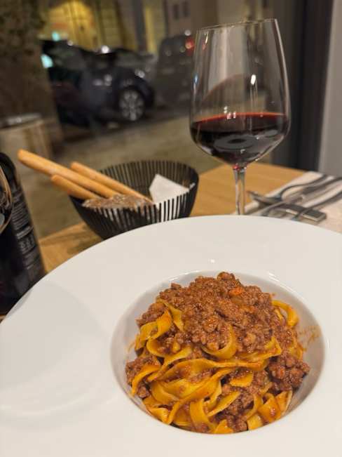 10/10+1Irnerio 10 offered one of the best dining experiences of our entire trip. We were seated right by the window, which made the evening even more enjoyable. The service was exceptional, and special credit goes to Vittoria and Filippo, who were incredibly attentive, warm, and professional throughout the night. The meal started perfectly with fresh bread and crisp biscuit sticks paired with their specially selected olive oil and balsamic vinegar. The recommended full-bodied red wine was outstanding and complemented the dishes beautifully. Every main course was fantastic: the tagliatelle al ragù was rich and comforting, the guancia was tender and flavourful, and the tagliolino vongole was fresh and well-balanced. The matcha tiramisu was a unique and delightful finale. Great value for money considering the high food standard and excellent service—this restaurant genuinely has the potential to become a Michelin-star spot in the near future. A truly memorable evening.