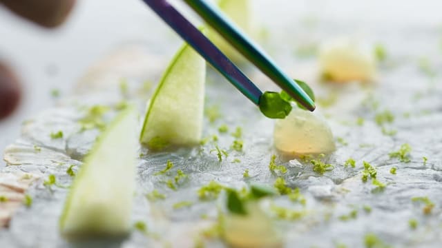 - Berenjenas ahumadas, mayo de ajo negro, consomé de regaliz