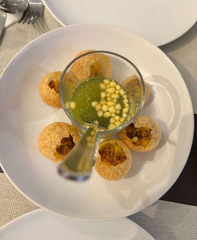 - Crispy hollow puris filled with tangy tamarind chutney, spicy water, and savory fillings.