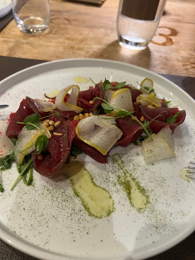Food was very good. The wine pour was very small.