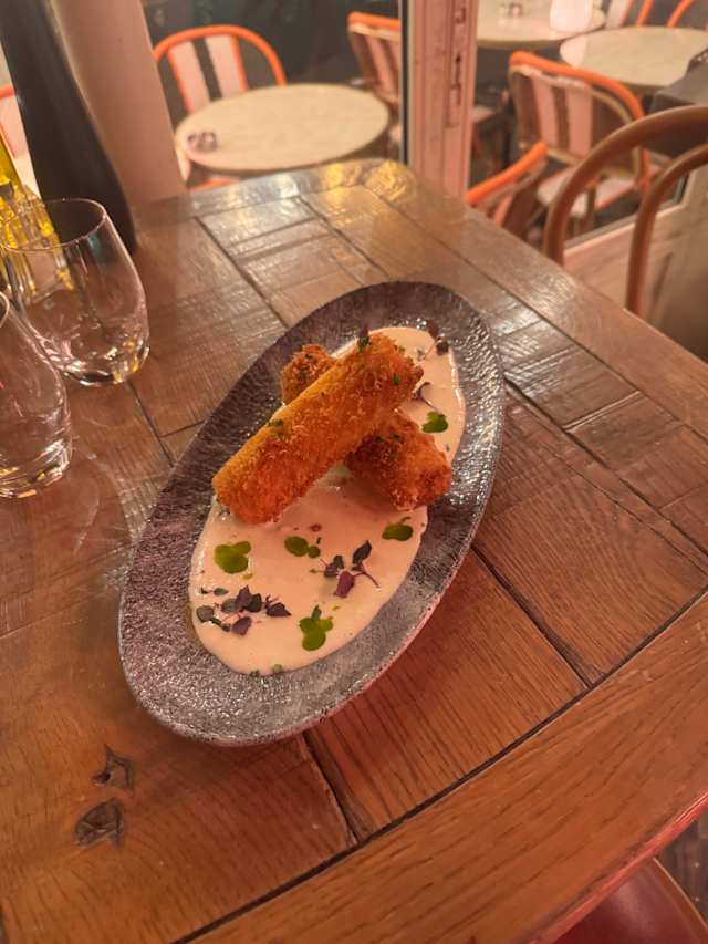 - Roulés de pâte frits, ragù bolognais et sauce de parmesan