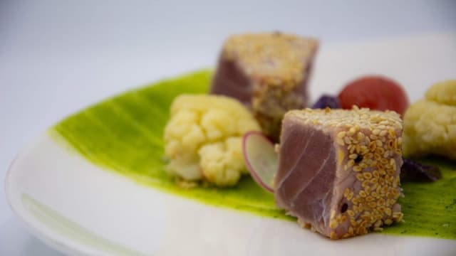 - Orata, pomodoro del trasimeno, uvetta, pinoli, vele di pane ed erbe aromatiche