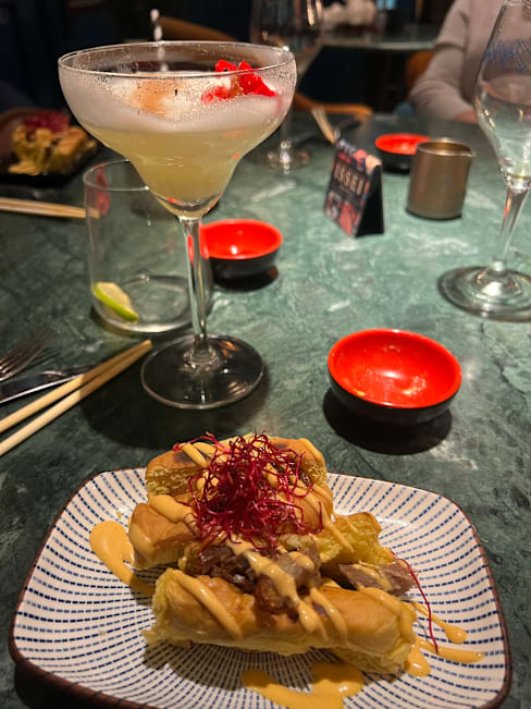 9.5/10The restaurant is really lovely but unfortunately we were sat right in the front window which was not as nice and a bit cold. We asked to be moved downstairs but they weren't serving that room at the time. The menu is very interesting with a twist on each dish they serve and since they are small portions you can try several. My partner tries a new cocktail every time we go and loves each one.