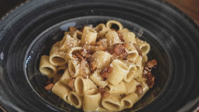 Pomodorino, guanciale, pecorino, cipolla e pepe