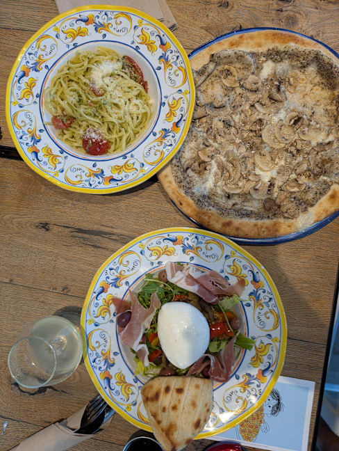 9/10We booked on the Fork app and it was a good deal. Food was delicious and we enjoyed it. Orders are taken at the cash-desk and you pay there. There are no waiters, it is a self-service. The restaurant is in a glass building so it is not cozy like most Italian restaurants but this did not spoil our visit. We would return.