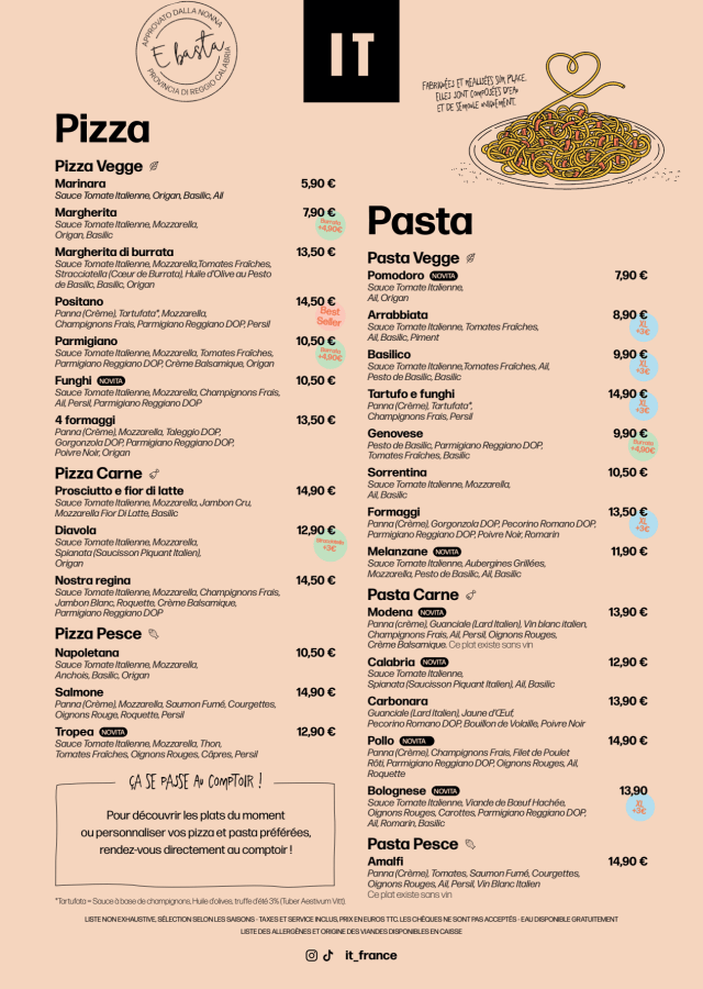 IT est une enseigne de restaurants italiens qui propose une cuisine familiale et authentique. Elle puise son inspiration dans les origines calabraises des fondateurs. Sa particularité : des produits venant tout droit d’Italie, des recettes uniques conçues par Renato, des plats frais et faits maison,...