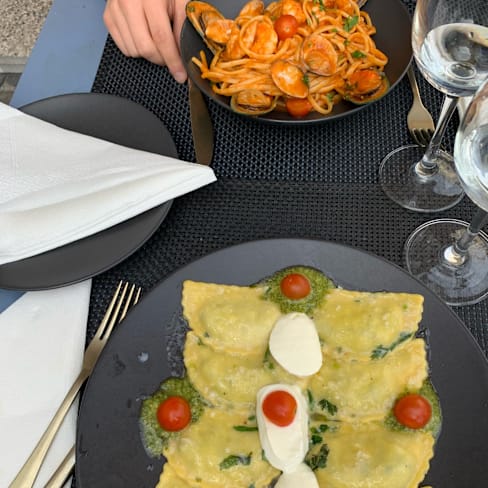 8.5/10Central location, you may dine on the terrace or inside. The service is too fast, we received our pasta and pizza, a minute after ordering, which tells that everything was cooked in advance and not properly heated, it all came almost cold. Otherwise the food was fine. The dessert was very good. The sparkling water was served with ice and lemon. This restaurant is very reasonably priced.
