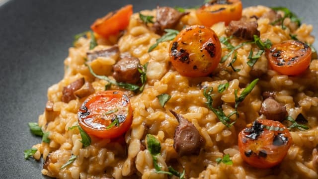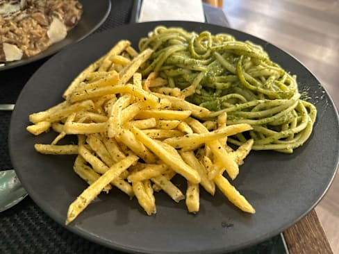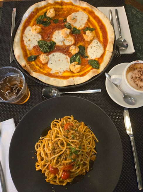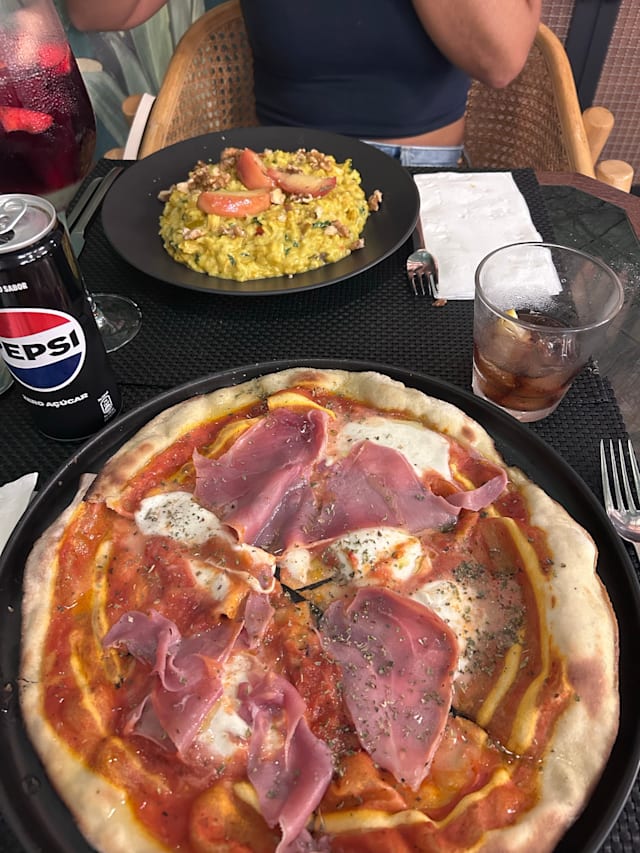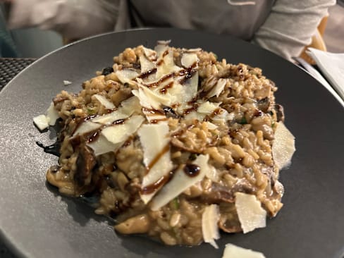 7/10The first plate was caprese and honestly it was rich, then we ordered three main plates: First the Calzone and it was rich. Then the funghi risotto, it tasted like burned some funghi and we didn’t like that but then the flavor when you didn’t take those funghi was good. Finally we ordered the linguini pescado and it was rich, it was so spicy and my girlfriend could not eat it but it liked it