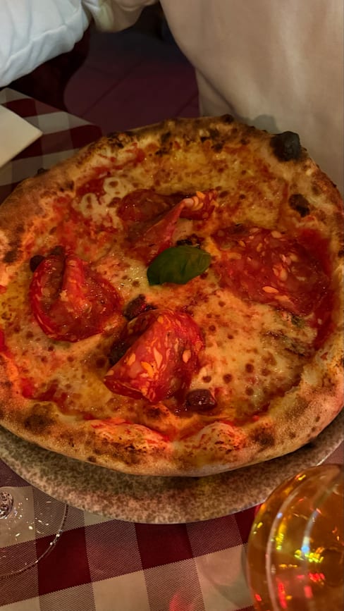 5.5/10Pizza was just decent, the room was cozy but had a lot of smoke from the oven. Tiramisu was good.