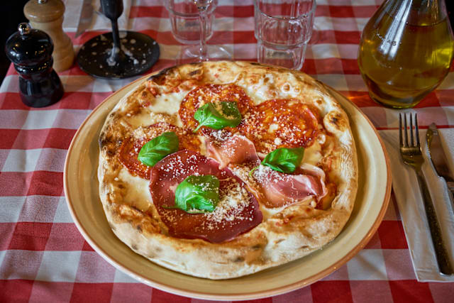 - Romansallad, tomat, mozzarella, olivolja, basilikasås,parma skinka
