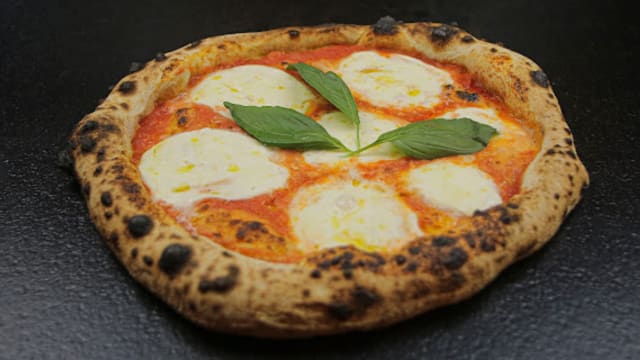 Pom. fresco datterino, pesto genovese, mozz di bufala D.O.P di battipaglia .
