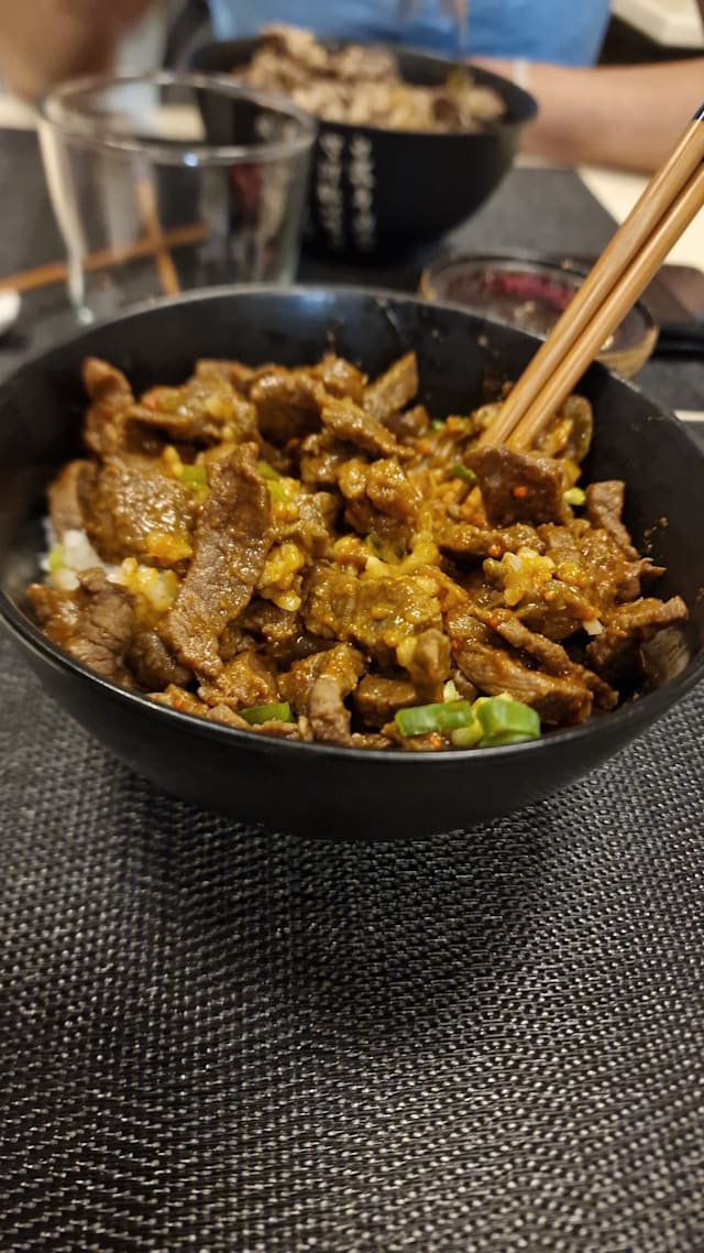 Salade de chou émincé et mariné avec notre assaisonnement secret à l’huile de sésame, sésame torréfié en topping. et pas de mayonnaise, évidemment