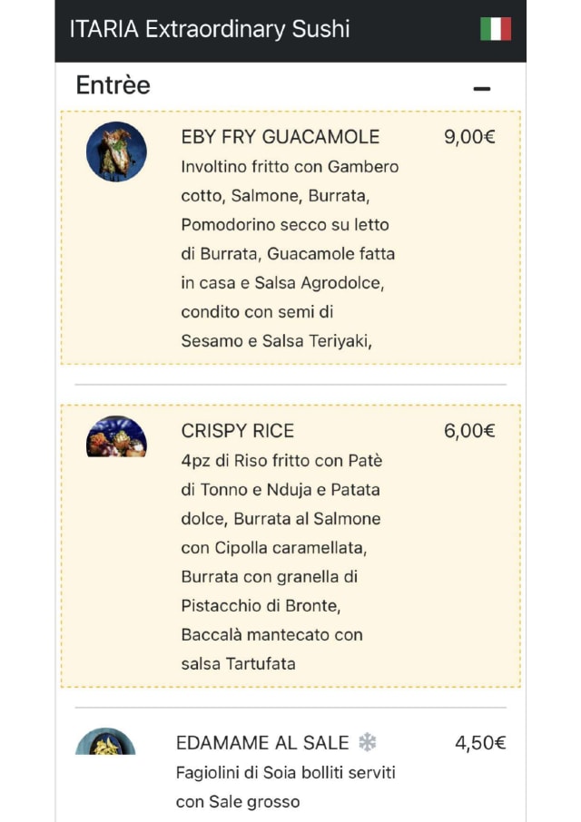 10/10The food was excellent and really taken care. Every single detail was carefully choose and the waiter explained us everything really professionally. Is defined a must go if you like an Italian definition of sushi!!