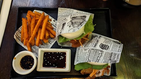 7.5/10A cozy restaurant with a mix of asian cuisines and reasonable price-quantity ratio. We ordered the miso soup and japanese ravioli for starters which we very much enjoyed. The same could be said for the chicken bao with a perfectly soft bao with crispy fried chicken. A special mention to the sweet potato fries and the sauce on the side which went well with the bao. To finish off, we ordered the grilled salmon which was a bit overcooked for our taste which would be the only letdown on an otherwise enjoyable meal.
