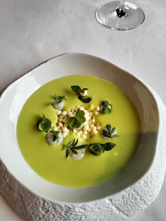 10/10brilliant, captivating and delicious food, excellent sommelier with surprising suggestions (we drank a 2014 100% viura white rioja). A memorable lunch on a beautiful location.