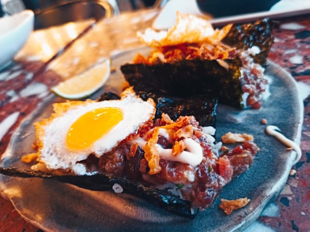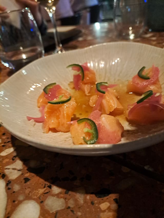 10/10Ambience paired with the dishes. Very cozy on a winter night. They had available spots outside with heating on, but i opted to stay inside. No noise, no overpowering odours. I ordered a couple items on the menu and I should say the rate that they were serving was perfect. I recommend this spot any day.