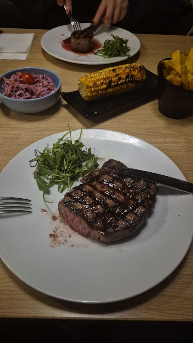 - Een mooie dikke rib-eye aan het bot, door dat het vlees aan het bot wordt gegaard krijgt het een heerlijke smaak. Echt een aanrader.