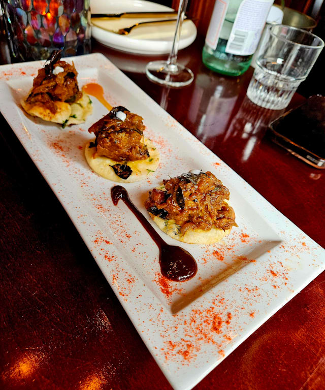 4/10Food tastes amazing. Presentation is on point. Service is lacking, sloppy. Waiter prefers to hear himself talk than to actually care about his guests. Wine selection and cellar is lacking. No sommelier. Champagne is served warm. Vegan options are offered verbally but not made to order. Meals are brought when they are ready, strong mise en place failure. Poor hygiene from the waiter who wore gloves but smoked cigarettes outside without changing. The waiter told us that he aspires to a Michelin star, please stay away from that restaurant if that is what you are looking for
