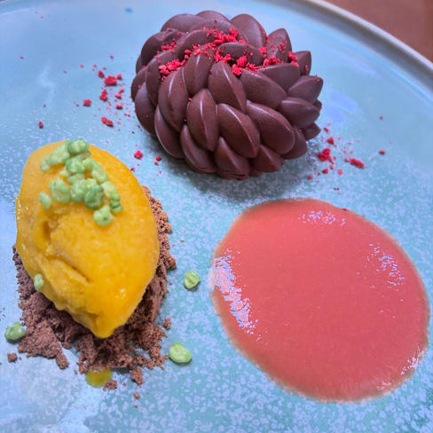 9/10+2We chose this restaurant to celebrate our anniversary, and it turned out to be a wonderful experience. The cocktails were expertly crafted, and the quality of the food was outstanding. Each dish was beautifully prepared, with clear attention to detail in both flavor and presentation. For the price, however, I’d suggest slightly larger portions and a bit more personalized service. Hearing the same scripted explanations at each nearby table diminished the unique, individual touch we were hoping for. That said, this place has incredible potential, especially as they’re just getting started. Overall, we had a fantastic evening and would definitely recommend it!