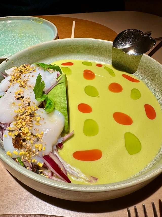 9/10+2We chose this restaurant to celebrate our anniversary, and it turned out to be a wonderful experience. The cocktails were expertly crafted, and the quality of the food was outstanding. Each dish was beautifully prepared, with clear attention to detail in both flavor and presentation. For the price, however, I’d suggest slightly larger portions and a bit more personalized service. Hearing the same scripted explanations at each nearby table diminished the unique, individual touch we were hoping for. That said, this place has incredible potential, especially as they’re just getting started. Overall, we had a fantastic evening and would definitely recommend it!