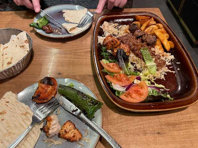 - Plato Kebap con arroz y patatas