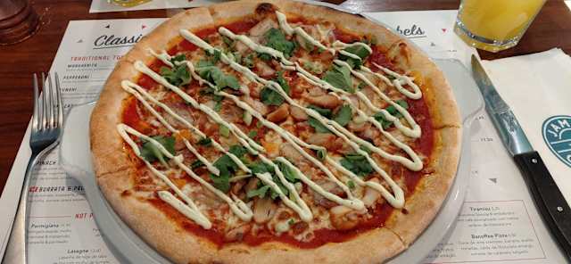 8.5/10It might not be the best pizza in town but the staff was great, the service quick and it was easy peasy for the kids.