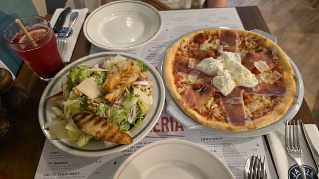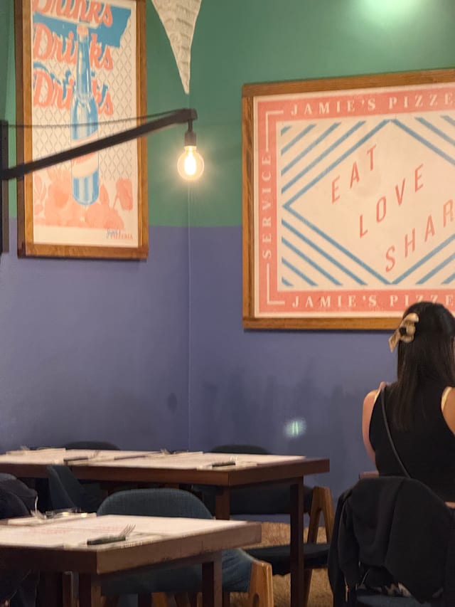 9/10Tasty pizza , lovely decor and all of Jamie’s resturants have very clean and some great design toilets . These toilets were spotless. Nice waiter named Sumi