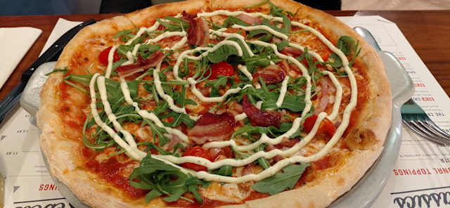 9/10The waiters were very welcoming and nice. Pizzas were amazing, very tasty dough (Margherita and The BLT). The place and bathrooms are very clean and well taken care of.