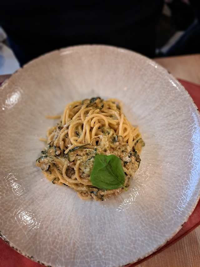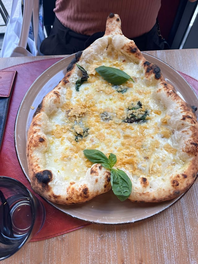 10/10This is off the beaten path but well worth it. We had the Paccheri alla Genovese. The pasta was not super al dente as we have been experiencing throughout Italy. The Genoves sauce was slightly salty but overall extremely tasty. We also ordered their Smashburgers which were in a sort of pita bread. Cooked perfectly and also delicious. Their Imperial Fritto dish is enough for 2 people. Great if you love fried foods. Of course the pizza was delicious. Low key, nice vibe and simply decorated. Staff was very attentive.