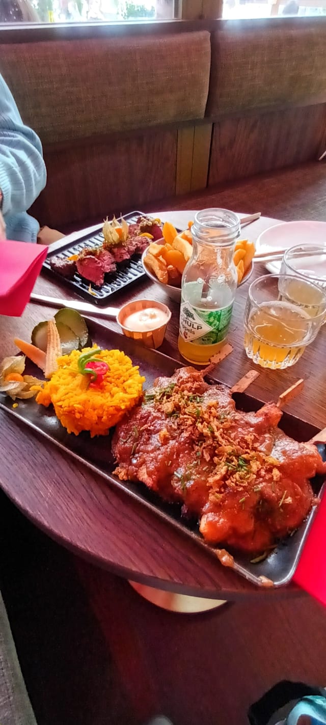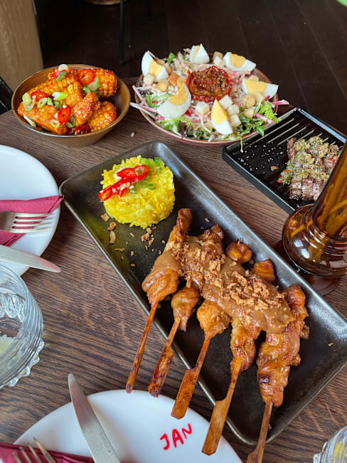 6.5/10If it weren’t for the 50% discount it would have been quite expensive for what it was. The corn ribs were nice and the salad was as good as a salad can be. But the rice that came with the chicken satay was super wet and the steak was not very tasty.