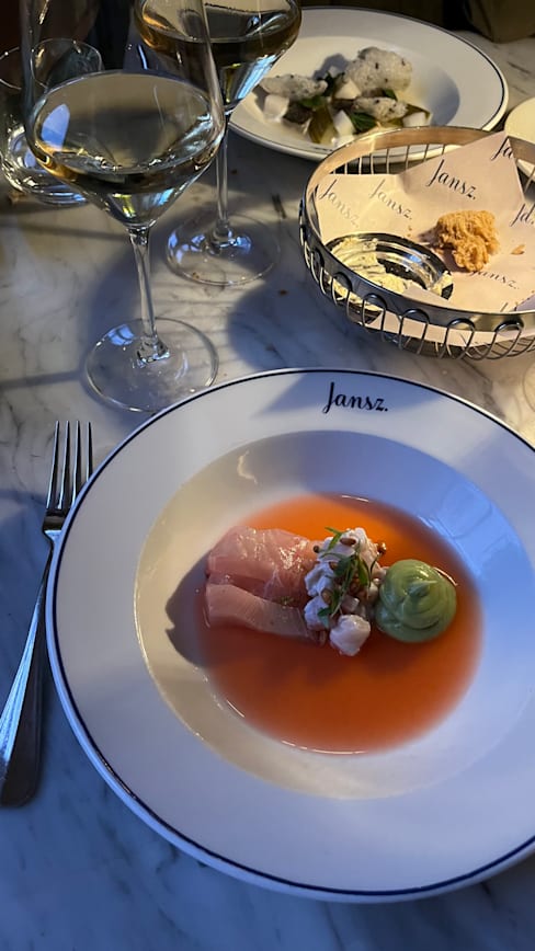3.5/10We ate at Jansz a year ago. It was I best meal we ate in our 2 weeks in Amsterdam. Tonight it was awful. My wife ordered the sole. Same as she did last year except there was no salad with it or vegetable. It was completely tasteless and there was a tremendous amount of oil on the plate. For 65 euros that is ludicrous! My sea bass was also very mediocre. The spinach was soggy and drenched in a terrible sauce. No bread was served until I asked for some. It was one of the worst meals we had this year in Amsterdam.