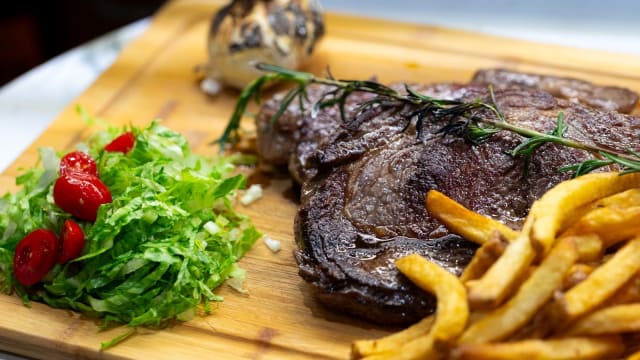 Entrecôte de bœuf accompagnée de pommes frites maison, sauce poivre